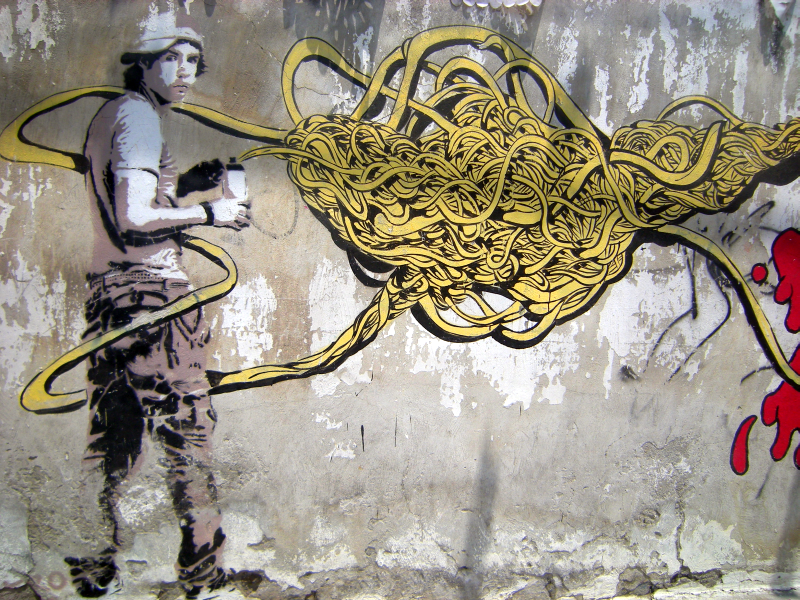 After touring the church and trying some Aztec chocolate drink, we headed down to Cholula (about 2 miles away) on foot. After not wearing sunscreen and burning, I am happy to say that I am now about two shades darker. This Mexican sun is relentless. Anyways, along the way we found so crazy cool street art.